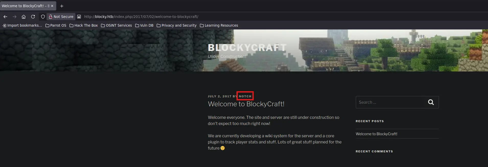 While browsing the website, we ended up on a WordPress post created by a user named Notch