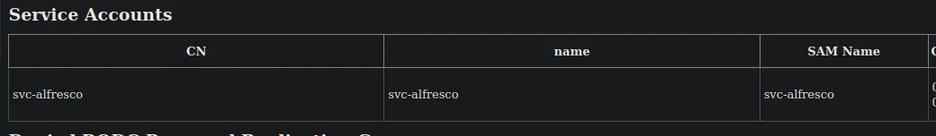 SVC-Alfresco user account belongs to the Service Accounts Group