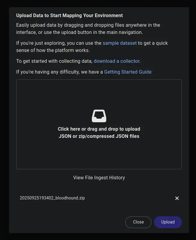 Then, just upload the created zip file to Bloodhound CE