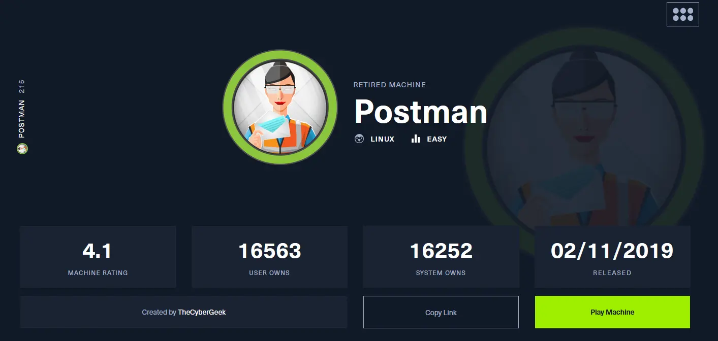 # Nmap 7.94SVN scan initiated Thu Dec 18 20:39:26 2025 as: nmap -p22,80,6379,10000 -sCV -v -n -Pn --disable-arp-ping -oN Postman.targeted 10.129.2.1Nmap scan report for 10.129.2.1Host is up (0.049s latency).PORT STATE SERVICE VERSION22/tcp open ssh OpenSSH 7.6p1 Ubuntu 4ubuntu0.3 (Ubuntu Linux; protocol 2.0)| ssh-hostkey:| 2048 46:83:4f:f1:38:61:c0:1c:74:cb:b5:d1:4a:68:4d:77 (RSA)| 256 2d:8d:27:d2:df:15:1a:31:53:05:fb:ff:f0:62:26:89 (ECDSA)|_ 256 ca:7c:82:aa:5a:d3:72:ca:8b:8a:38:3a:80:41:a0:45 (ED25519)80/tcp open http Apache httpd 2.4.29 ((Ubuntu))| http-methods:|_ Supported Methods: GET POST OPTIONS HEAD|_http-server-header: Apache/2.4.29 (Ubuntu)|_http-title: The Cyber Geek's Personal Website|_http-favicon: Unknown favicon MD5: E234E3E8040EFB1ACD7028330A956EBF6379/tcp open redis Redis key-value store 4.0.910000/tcp open http MiniServ 1.910 (Webmin httpd)| http-methods: |_ Supported Methods: GET HEAD POST OPTIONS|_http-title: Site doesn't have a title (text/html; Charset=iso-8859-1).|_http-favicon: Unknown favicon MD5: 066AF1F6A59FCB67495B545A6B81F371Service Info: OS: Linux; CPE: cpe:/o:linux:linux_kernelRead data files from: /usr/bin/../share/nmapService detection performed. Please report any incorrect results at https://nmap.org/submit/ .# Nmap done at Thu Dec 18 20:40:07 2025 -- 1 IP address (1 host up) scanned in 40.79 seconds