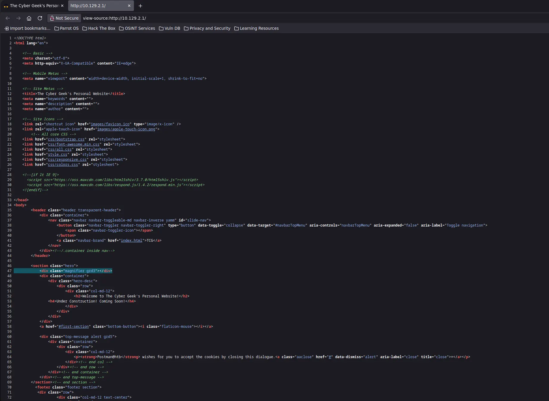 If we inspect the source code of the login page, we won´t get anything interesting either such as the source code to search for vulnerabilites for the given version