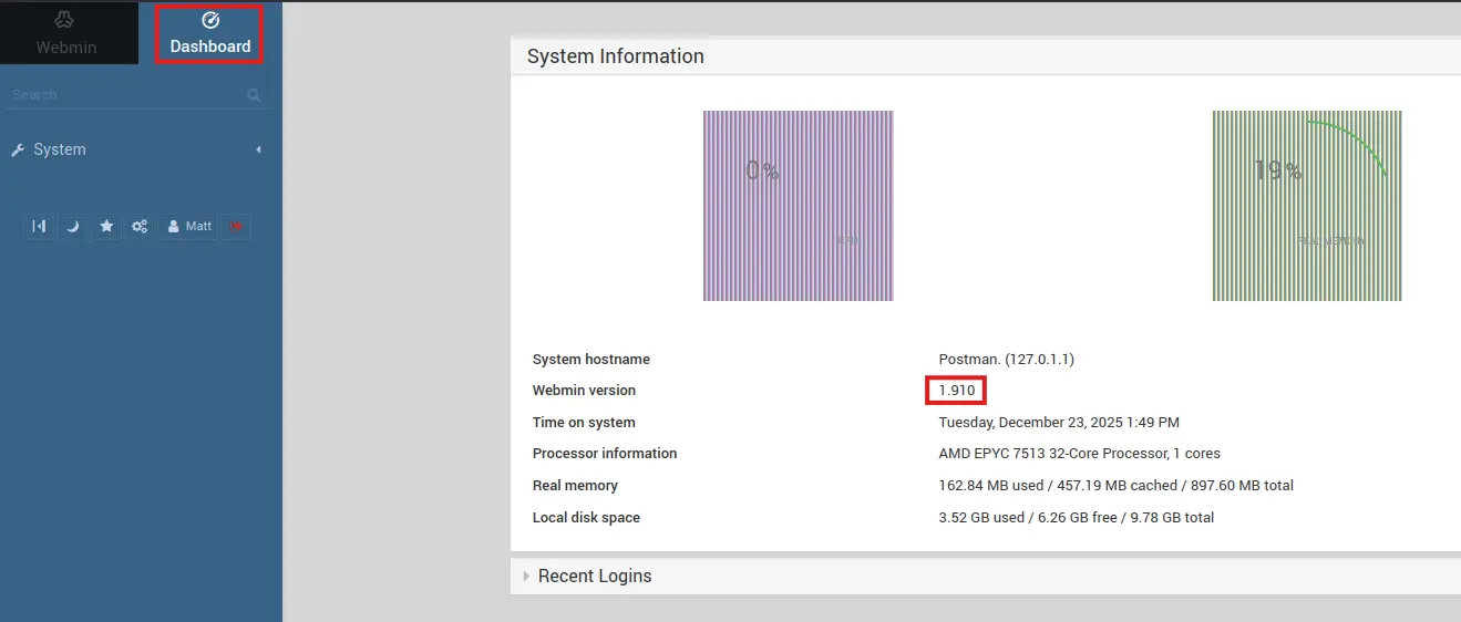 As stated, system users can normally log in to the Webmin Panel, so we can do the same with the user Matt