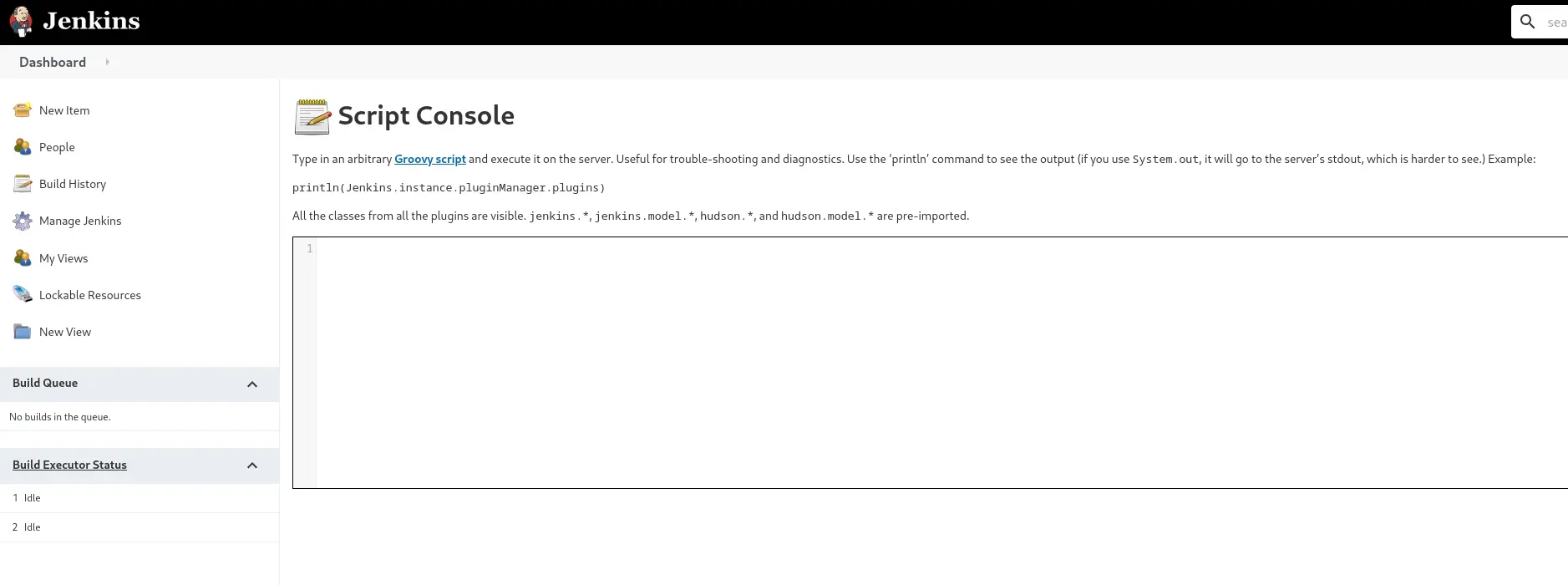 This script console allow us to run arbitrary Groovy scripts within Jenkins, so as stated, we can leverage this feature to run system commands