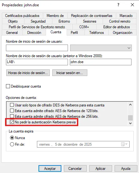 Usually, when a kerberos client initiates an AS Exchange by requesting a Ticket Granting Ticket (TGT) for a certain principal, indicated in the AS_REQ’s ClientName field, the KDC’s AS checks for its UserAccountControl attribute in order to verify whether this user requires Kerberos Preauthentication or not