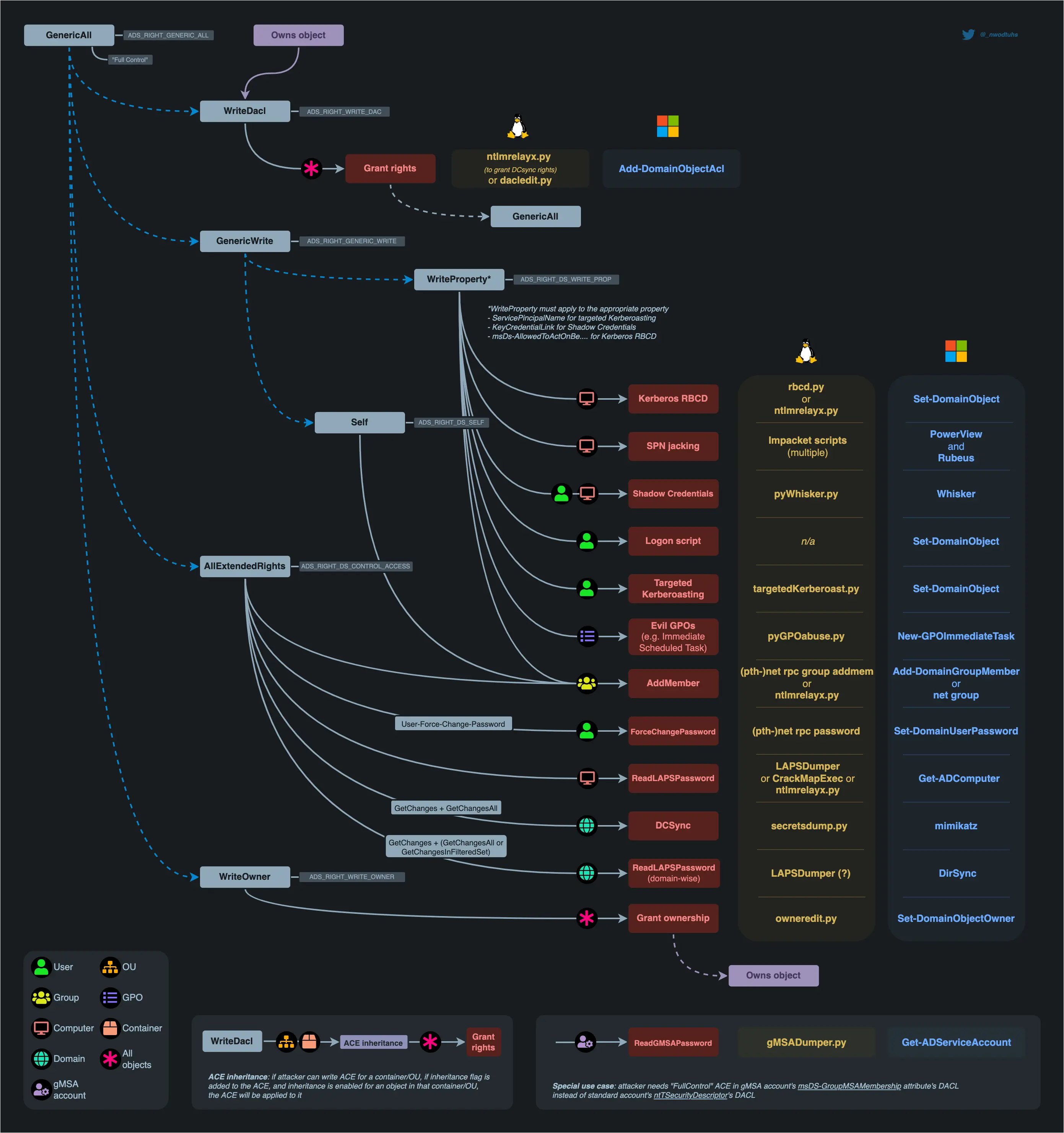 dacledit.py -dc-ip <TARGET> -target '<TARGET>' -action read '<DOMAIN>/<USER>:<PASSWD>'Read a User Account DACL filtering by a certain Object