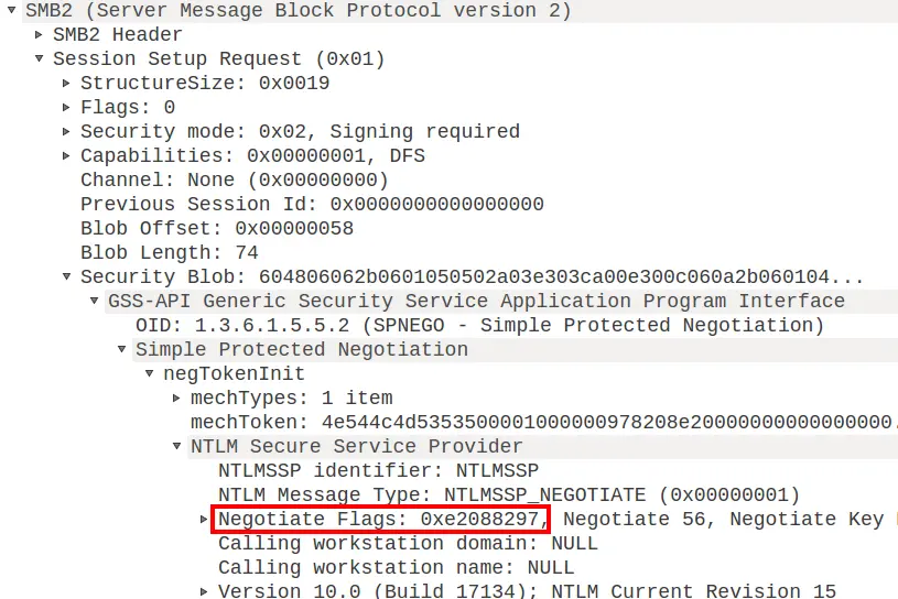 This is why it is not possible to cross-relay an authentication over SMB to an LDAP server. Windows SMB clients always enable that integrity flag and the DCs’ LDAP servers are set to ensure integrity session if the client supports and enables it