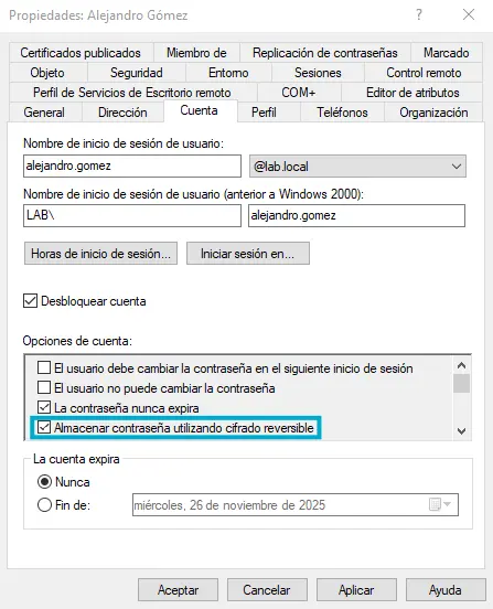 However, a flag can be set in the UserAccountControl attribute of a given domain user account in order to enable reverse encryption i.e. Instead of storing the NT Hash, the plain password is encrypted by using RC4 as encryption algorithm and the SYSTEM’s Syskey as symmetric key